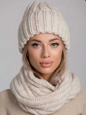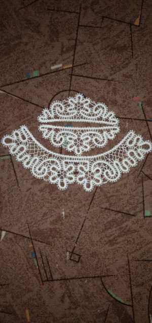 Воротник с манжетами, нитки лен, цвет кремовый, по центру пропущена белая нить