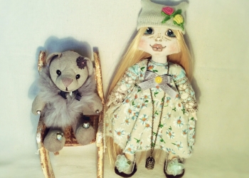 Текстильная кукла ростиком около 30см Куколка сидит и стоит ,в локтях и коленях сгибается