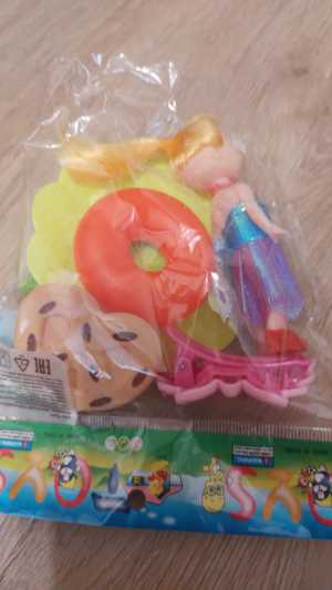 Продам набор входит мини тарелка, кукла, мини печенка,бутылка,конфета,заколка и кукла