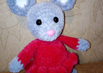 Игрушка мышонок из плюшевой пряжи, глазки и носик на безопасном креплении, наполнитель холлофайбер. Размер 35 см.