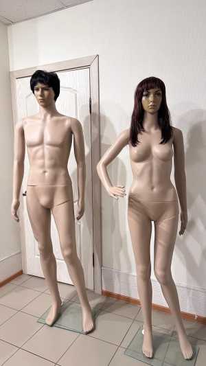 Манекен женский в полный рост. Волосы - парик. Стеклянная поставка. Хотя и Б/У но в отличном состоянии. В наличии 1 штука.