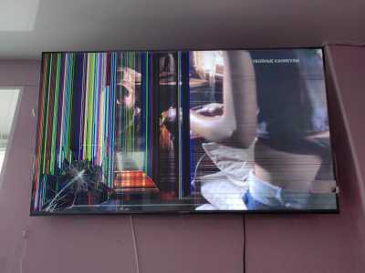 Покупали год назад, документы и коробка имеется, телевизор работает, но экран разбит