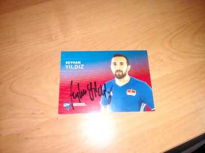 Продам карточку с автографом защитника сборной Лихтенштейна по футболу - Seyhan Yildiz. Карточка новая. Длина 14,5 см.