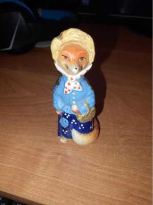 Продам очень редкую коллекционную фигруку в виде лисы с корзинкой. Производство - СССР. Высота 10 см. Состояние на фото.