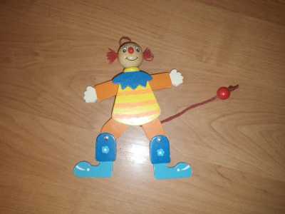 Фото 1-4: Деревянная игрушка в виде клоуна. СССР. Очень хорошее состояние. Двигаются руки и ноги