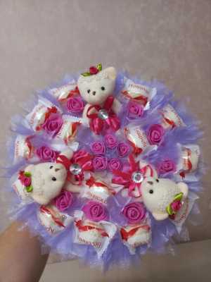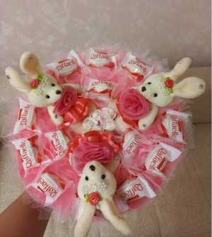 Продам красивый букет из мягких игрушек и конфет рафаэлло.