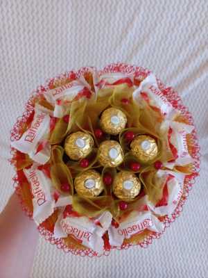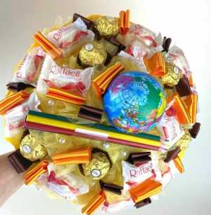 Красивый и сладкий букет с Ферерро Роше и Рафаэлло. Отличный подарок на любой праздник и повод.