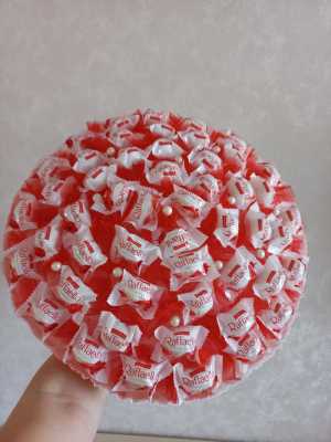 Удивить букетом на свадьбу можно! Если этот букет из вкусных конфет Рафаэлло и красивого Размер букета: 25-30 см в...