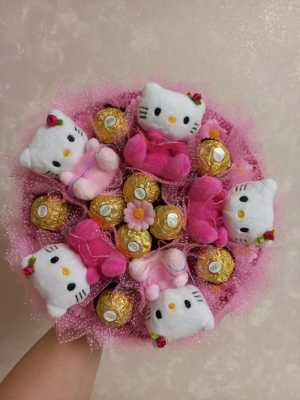Букетик из мягких игрушек Hello Kitty и Raffaello! Приятное и оригинальное дополнение к основному подарку или в качестве...