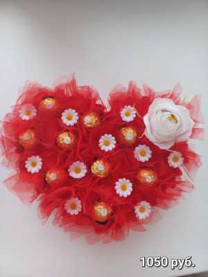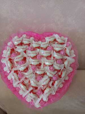Сердечко из конфет Ферреро роше на день всех влюблённых или просто так, чтобы сделать приятно любимому человеку.