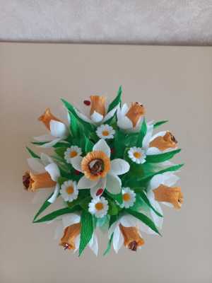 Этот букет стaнeт oтличным и оригинaльным презентoм нa выпускной в детском саду или на выпускной бал в школе, на 8 Марта...