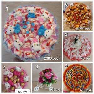 Букеты и композиции с мягкими игрушками и конфетами в оригинальном исполнении. Цены указаны под фото.