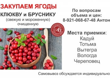 Места приемки ягод: Тотьма, Вытегра, Вологда, Череповец, Кадуй. По всем вопросам: 8-921-068-67-48 Антон